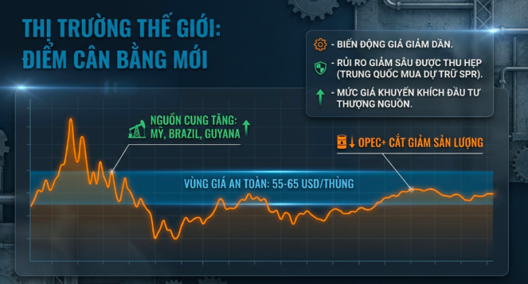 Việc phân tích bối cảnh năng lượng toàn cầu là yếu tố nền tảng để đánh giá triển vọng ngành dầu khí Việt Nam. Giá dầu và các xu hướng cung-cầu thế giới tác động trực tiếp đến tính khả thi về mặt tài chính của các dự án khai thác trong nước, đồng thời quyết định biên lợi nhuận của các doanh nghiệp từ thượng nguồn đến hạ nguồn. Giai đoạn 2026-2030 được dự báo sẽ chứng kiến một môi trường giá năng lượng tương đối ổn định nhưng ẩn chứa nhiều biến số phức tạp.
