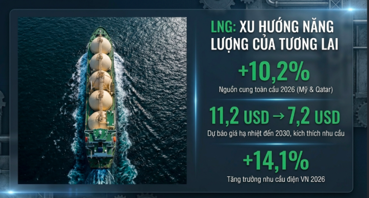 Sự gia tăng mạnh mẽ của nguồn cung sẽ dẫn đến một chu kỳ giá giảm của LNG sau năm 2026. Wood Mackenzie dự báo giá LNG có thể giảm từ 11,2 USD/mmBTU năm 2024 xuống còn 7,2 USD/mmBTU vào năm 2030. Xu hướng này mang ý nghĩa chiến lược quan trọng đối với Việt Nam – một quốc gia đang đẩy mạnh nhập khẩu LNG để đảm bảo an ninh năng lượng.
