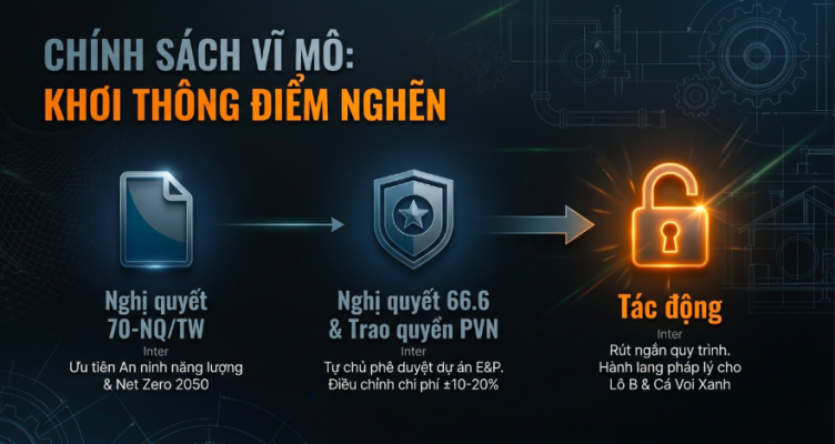 - Trao Quyền Vận Hành (Nghị quyết 66.6/2025/NQ-CP): Cho phép Tập đoàn Dầu khí Việt Nam (PVN) tự phê duyệt các dự án thăm dò khai thác (E&P) quy mô nhỏ và điều chỉnh dự án với biến động vốn nhất định, giúp đẩy nhanh đáng kể tiến độ triển khai.