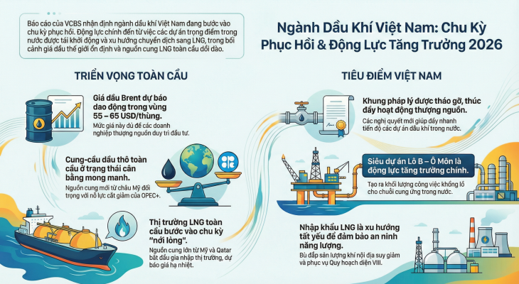 Ngành dầu khí Việt Nam đang bước vào một chu kỳ tăng trưởng mới và sôi động trong giai đoạn 2026-2030. Các phân tích đã chỉ ra ba động lực cốt lõi định hình nên bức tranh tích cực này: (1) một môi trường pháp lý ngày càng thuận lợi đã tháo gỡ những “nút thắt” tồn tại nhiều năm; (2) việc triển khai đồng loạt hàng loạt dự án thượng nguồn quy mô lớn, đặc biệt là siêu dự án Lô B – Ô Môn, tạo ra khối lượng công việc khổng lồ; và (3) xu hướng chuyển dịch sang nhập khẩu LNG là tất yếu để đảm bảo an ninh năng lượng quốc gia trong bối cảnh nguồn cung nội địa suy giảm.