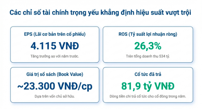 • Hiệu quả cao: ROE năm 2025 đạt 20,6%, một con số rất tích cực, cho thấy khả năng sinh lời vượt trội trên mỗi đồng vốn của cổ đông, đạt được với mức đòn bẩy tài chính thấp.