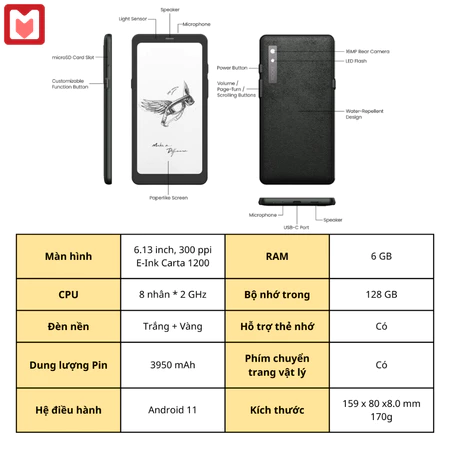– Màn hình: 6.13 inch, E-ink Carta 1200