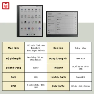 Công nghệ Boox Super Refresh độc quyền với bộ vi xử lý 8 nhân, tốc độ lên đến 2.8GHz.