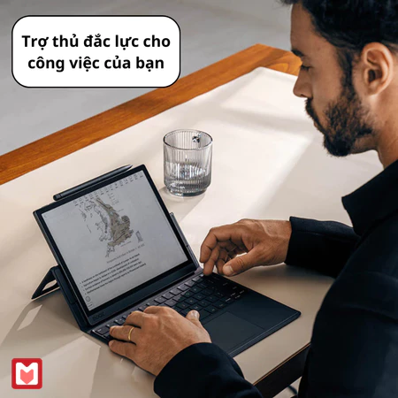 Cover nam châm premium tạo cảm giác như đang sử dụng PC, x2 năng suất của bạn. Cover kèm bàn phím full-size tích hợp Trackpad dễ dàng điều hướng giúp hoàn thành công việc nhanh hơn.